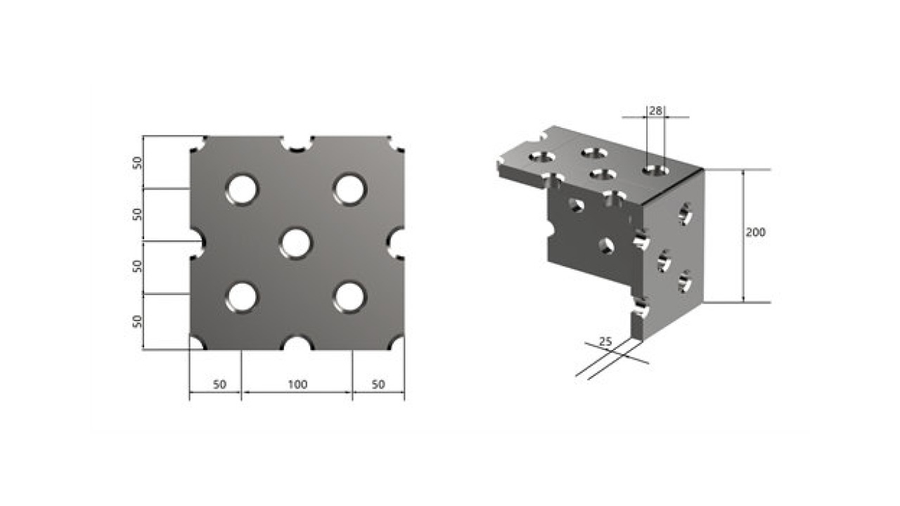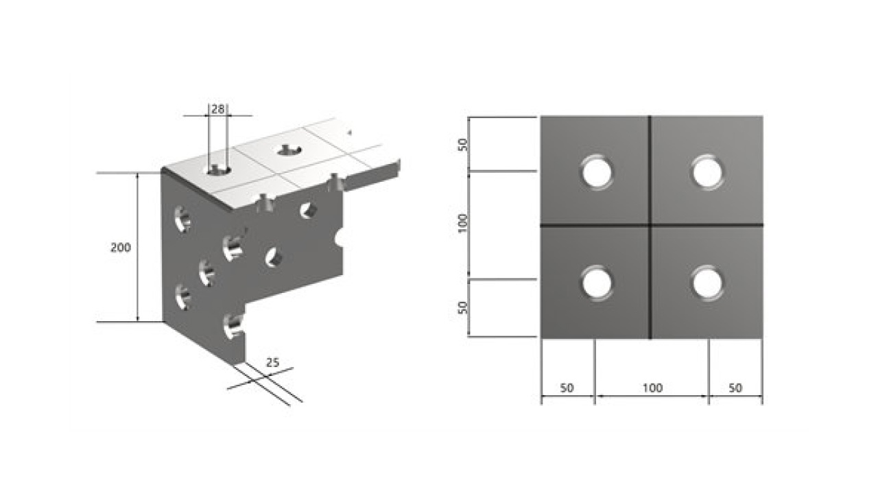 Сетка отверстий 100 мм и 50 соответственно системе.